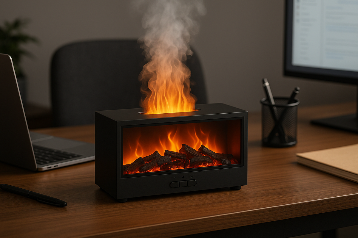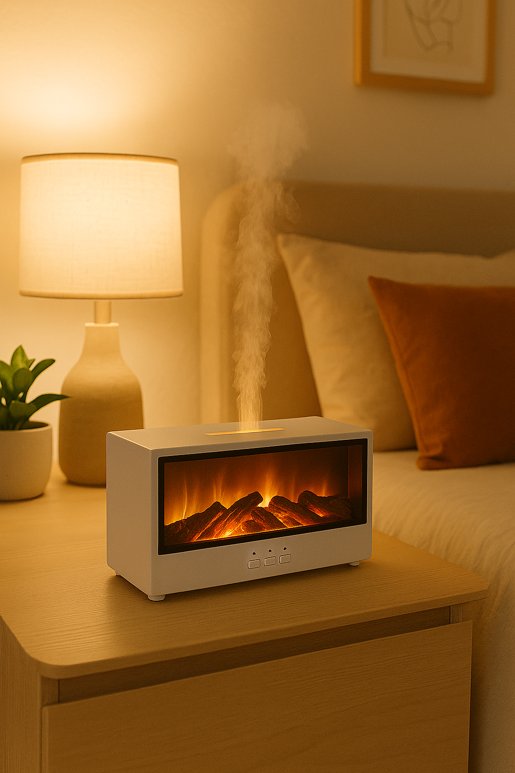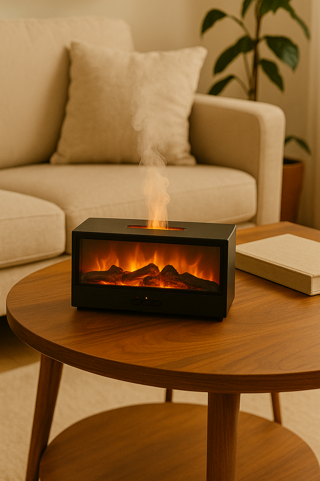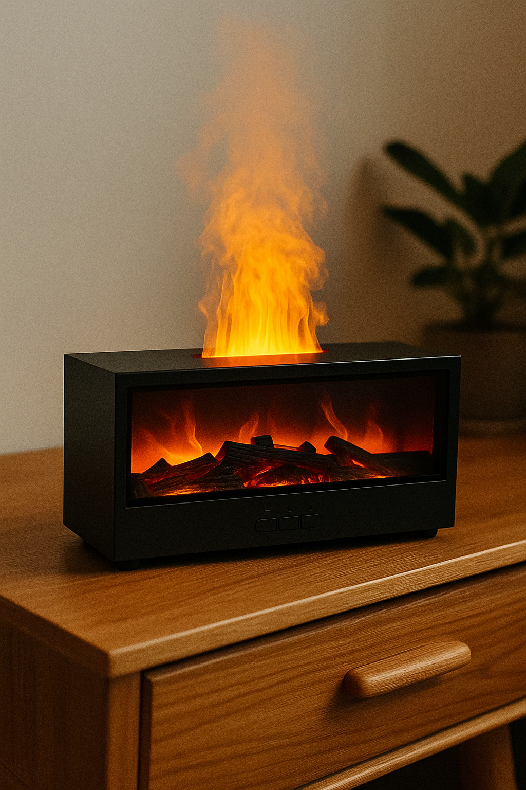 Transform your space into a cozy haven with our stylish humidifier featuring a realistic 3D flame effect. Dual functionality enhances your environment with humidification and aromatherapy features.